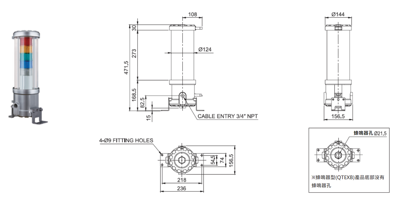 - Ex d II C級隔爆型LED塔燈,可用於爆炸性氣體區域